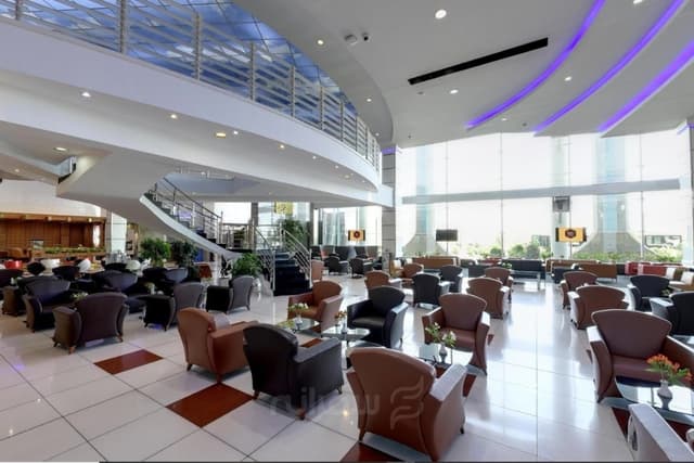 سالن تشریفات با چشم انداز باند فرودگاه، امکاناتی نظیر نمازخانه، سالن کنفرانس اختصاصی، شعبه بانک اختصاصی برای انجام امور ارزی و ریالی، فروشگاه های عطر، خشکبار، صنایع دستی ، اتاق اختصاصی سیگار با تهویه مناسب دارد. همچنین برای سرگرم شدن بچه ها کنسول های بازی در سالن بیزینس لانژ تعبیه شده است. در این سالن اینترنت و اتاق مخصوص کامپیوتر در دسترس مسافران قرار دارد. علاوه بر این اگر پرواز تاخیر داشت مسافران می توانند در سوئیت های ویژه اقامت استراحت کنند.